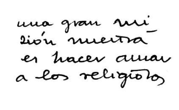 San Josemaría siempre amó y veneró a los religiosos. Recogemos un autógrafo suyo dirigido a los miembros del Opus Dei, donde les decía: "Una gran misión nuestra es hacer amar a los religiosos".