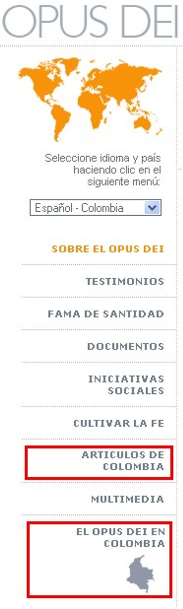 Sección el Opus Dei En ColombiaEsta sección contiene el recuento histórico del inicio de la labor apostólica de la Prelatura en este país, el gobierno y una corta descripción de algunas iniciativas sociales que algunos fieles del Opus Dei llevan a cabo en Colombia –junto con cooperadores de la Obra y muchas otras personas, creyentes y no creyentes-.