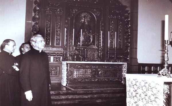 A las seis y media, el carro que lo conduce hace su entrada en el estacionamiento, mientras las campanas de la ermita suenan a voleo. Saluda a todos mientras se dirige al oratorio situado en el segundo piso de El Farallón. Se detiene unos instantes, de rodillas ante el Sagrario, y al salir nos comenta que le ha gustado mucho. Tras pasar a la Administración, pide que se comunique con sus hijos de Guatemala, para decirles que ha llegado bien.