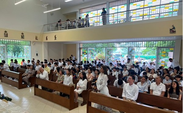 Decenas de personas acudieron el 11 de diciembre, a media mañana, a la celebración de la Santa Misa en el Oratorio del Colegio Aspaen La Fragua de Neiva, en el Departamento del Huila.