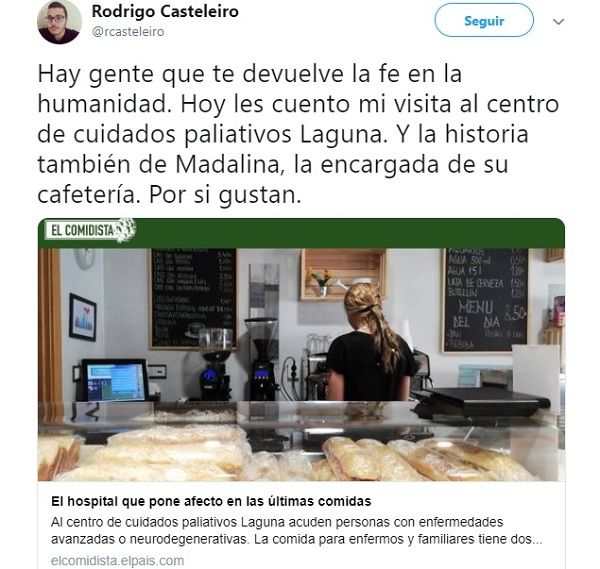 En junio de 2018, Madalina Popa recibió el encargo de su vida. Aquel que, sin saberlo, iba a cambiar su percepción de las cosas, aunque por aquel entonces esta camarera de 30 años no supiera muy bien qué era eso de los cuidados paliativos. Lo único que le había dicho su jefe es que iba a ser la nueva encargada de la cafetería de un hospital de Madrid. El típico sitio, pensó al verlo tan silencioso, donde la gente va a hacerse unos análisis y se marcha. Pero con el paso de los días veía que algo raro estaba pasando, porque cada día al abrir se encontraba con una fila de miradas tristes y ese vacío fácilmente reconocible de quien ha perdido a un ser querido. Así que decidió preguntar qué era ese sitio realmente.
