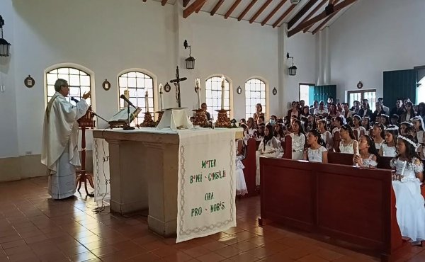 Las inquietudes de los pequeñines de El Colegio Integral Femenino, localizado en Soacha, un municipio cercano de Bogotá y de casi un millón de habitantes, crecían a diario y en otro de los salones sus padres también participaron en las clases de catequesis porque todos estarían en la gran fiesta de la Primera Comunión que tendrían el 10 de septiembre.