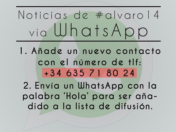 Con el objetivo de difundir con rapidez noticias de la beatificación de Álvaro del Portillo -novedades, material útil e información práctica de los eventos de la semana previa a la Beatificación-, se ha habilitado un número de teléfono para recibir dos WhatsApp semanales.