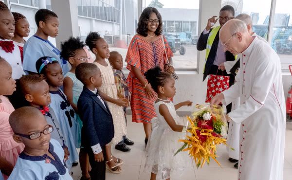A continuación fue recibido por el arzobispo de Lagos, monseñor Alfred Adewale Martins, en un encuentro caracterizado por la cordialidad y alegría. En el viaje de camino, el prelado se detuvo en la catedral católica de Lagos, y ahí rezó unos momentos ante el Santísimo Sacramento.