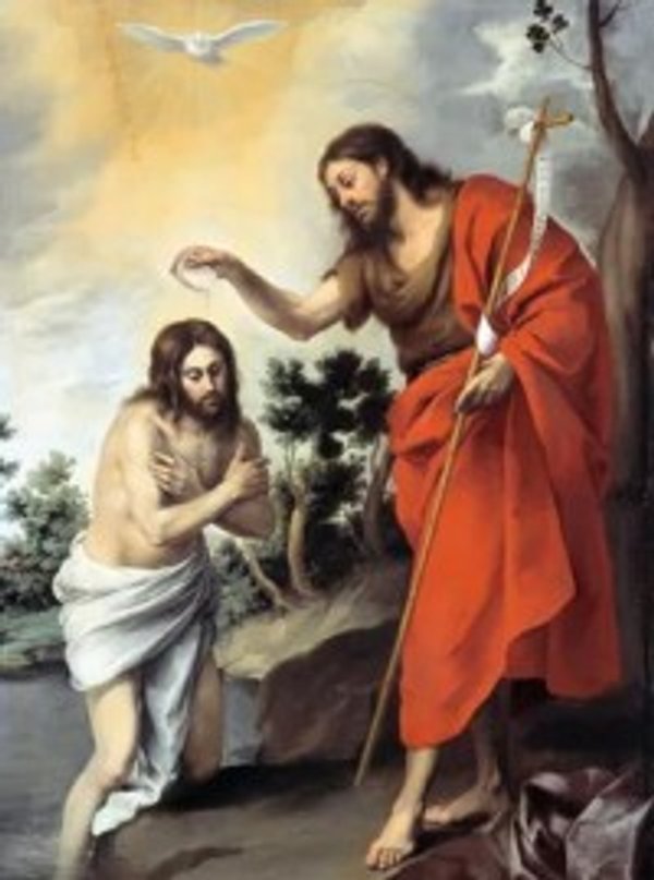 Nuestro Señor se sometió voluntariamente al Bautismo de san Juan donde el Espíritu desciendió sobre Él, y el Padre manifiestó a Jesús como su "Hijo amado".