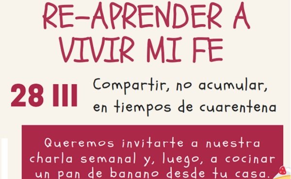 Desde el centro cultural Portones en Bogotá, antes de que iniciara el confinamiento preventivo por la pandemia de Coronavirus, habíamos empezado con un ciclo de clases los sábados por la mañana, al que llamamos “Re-aprender a vivir la fe”, que tuvimos que pasarlo a versión on-line, pues las asistentes no se lo querían perder.