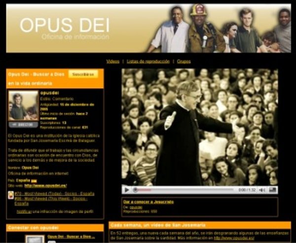 Ahora, el canal de la Oficina de Información del Opus Dei en Youtube contiene varias decenas de videos de corta duración, que están clasificados en varios apartados: videos sobre iniciativas apostólicas, sobre el Opus Dei y sobre San Josemaría, etcétera.