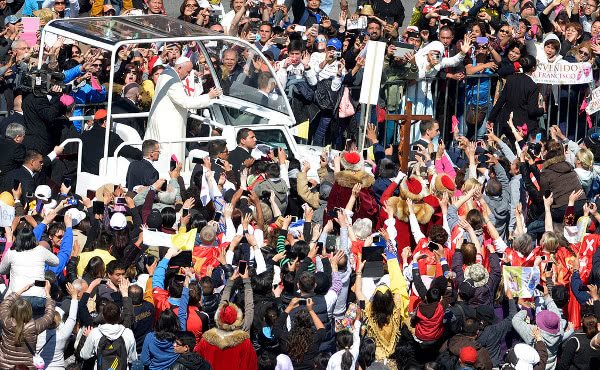 La gente, emocionada, cantaba: “se ve, se siente, el Papa está presente”. Otros de los espectadores simplemente quedaron paralizados por la sonrisa y paz que emana Francisco. Entre aplausos y alabanzas, la gente le pidió su bendición.