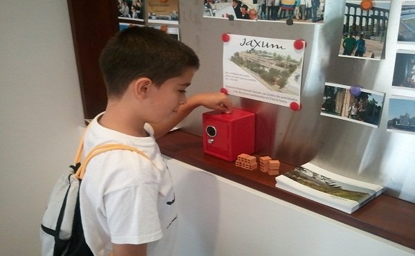 Después decidimos sugerir una cifra de donación. Haciendo unos cálculos llegamos a la conclusión de que un (1) euro era una cantidad apropiada para colaborar con un buen ladrillo en Tierra Santa. A su vez, conseguimos unos ladrillos en miniatura para que todo el que contribuyera se llevara un ladrillito de recuerdo; así podrían coleccionarlos y mostrarlos a sus amigos animándolos a unirse a este valioso proyecto. Poco a poco hemos ido llenando nuestra caja fuerte.