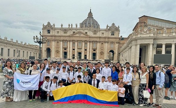 A esa audiencia llegaron veinticinco estudiantes del Colegio, acompañados por Álvaro José, su Rector; Hernán Darío, Director del Coro; y veinticinco papás y mamás; todos fueron ubicados muy cerca del Santo Padre. Las sorpresas no acababan con solo estar allí tan bien ubicados, pues segundos antes de la hora de inicio, se les acercó sorpresivamente un agente de la seguridad del Santo Padre y pidió al Rector que enviará cuatro niños que subieran al Papamóvil, los elegidos fueron los cuatro niños que estaban a su lado: Pablo, Juan Andrés, José Manuel y Santiago, ellos subieron al papamóvil, saludaron al Papa e iniciaron con él un recorrido por la Plaza de San Pedro. ¡Un momento emocionante e inolvidable! Este era sólo el inicio de ese gran encuentro en la Plaza de San Pedro.