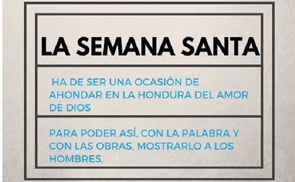 "Vivir la Semana Santa es entrar cada vez más en la lógica de Dios, en la lógica de la Cruz, que no es en primer lugar la del dolor y la muerte, sino la del amor y la de la entrega de sí mismo que da vida. Es entrar en la lógica del Evangelio"( Papa Francisco, 27 de marzo de 2013).
