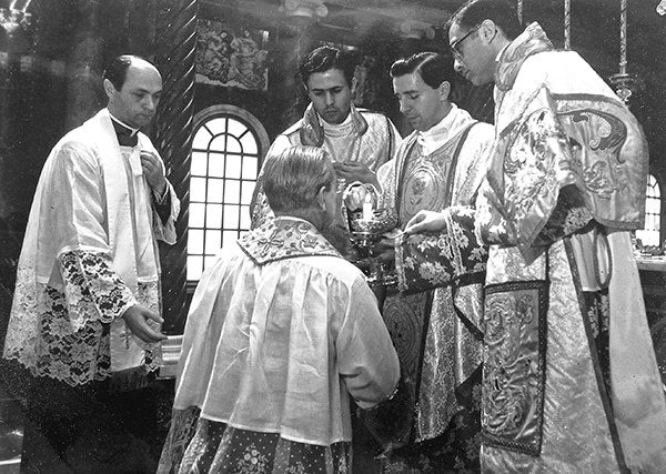 Mons. Paulino dando la Comunión a don Álvaro, recientemente declarado beato.Fotografía que encontró en la casa de su madre 37 años después de que fuera tomada.