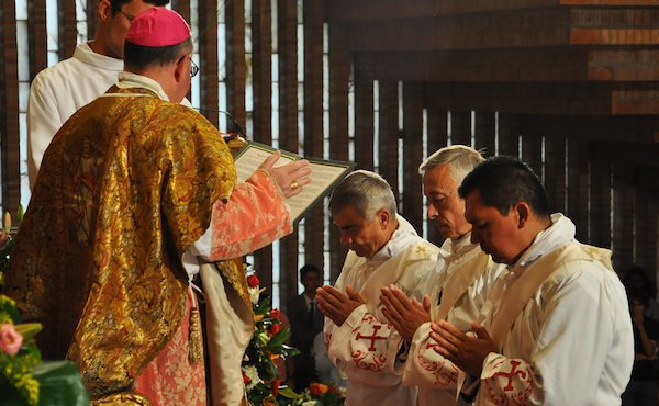 Queridos sacerdotes concelebrantes, ordenandos, familiares y amigos. Un saludo especial dirijo al Prelado del Opus Dei. Muchas gracias, Padre, por invitarme a conferir el sacramento del Orden a estos tres fieles del Opus Dei.