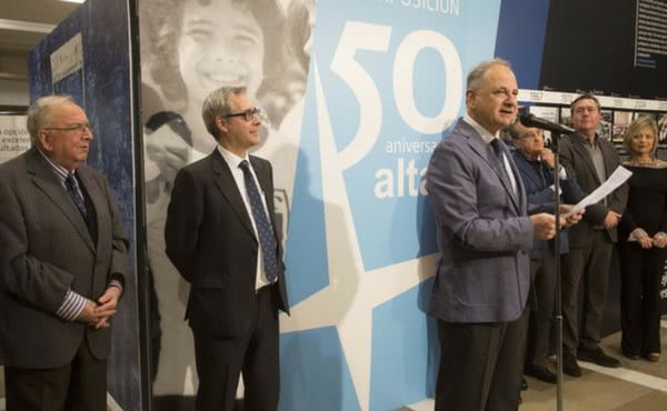 Ayer los vecinos más veteranos lo recordarían. "Íbamos por las panaderías, las peluquerías poniendo cartelitos", dice este profesor que antes lo fue en Málaga y en Ronda, especialista en Rilke y con una tesis doctoral en Filosofía Pura sobre la idea del Mundo. El Mundo, ese concepto ontológico, cabe entero en este colegio a cuya construcción dedicó Josemaría Escrivá de Balaguer los beneficios de la edición para bibliófilos y coleccionistas de Camino que salió en 1965. En enero de 1966 el fundador del Opus le entrega a Pablo VI el primer ejemplar de la edición. Ese año, vísperas de la fundación de Altair, nace Juan Espadas. El alcalde de Sevilla inauguró ayer la exposición y valoró el reto de un centro que hoy es un referente en el distrito Cerro-Amate, casi noventa mil habitantes, según las cuentas del delegado municipal, Juan Manuel Flores. "Un centro educativo es el motor de un entorno, el lugar de referencia de la familia", dijo Espadas, que este año también celebra los 75 años de los Salesianos de la Trinidad con los que pasó catorce años.