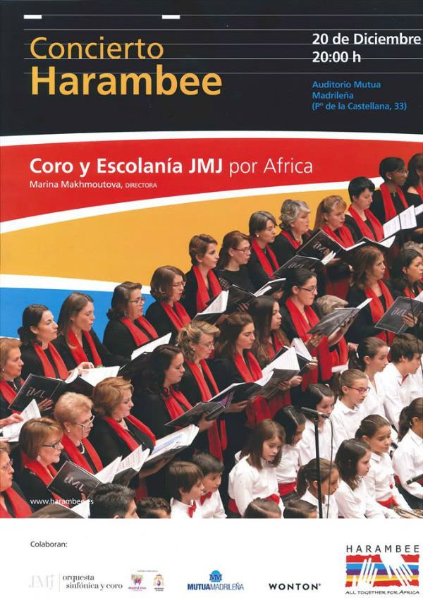 20 de diciembre a las 20:00 h. Auditorio de la Fundación Mutua Madrileña, en el madrileño Paseo de la Castellana. La Orquesta Sinfónica y el Coro de la JMJ protagonizarán un concierto con el que pretenden ayudar a mujeres embarazadas, escolares cameruneses, refugiadas de Sudán del Sur, etc.