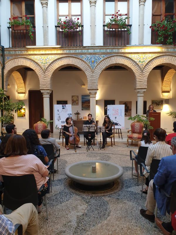 El grupo de cámara Idomeo interpretó varias piezas musicales. Al inicio del concierto interpretaron la canción mexicana "Cielito Lindo" y la ranchera "Corazón", para recordar los años mexicanos de Guadalupe.