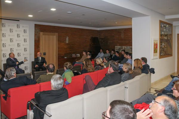 Tras el concierto y un refrigerio, los músicos mantuvieron un animado coloquio con los asistentes. Moderó el diálogo Alberto Fijo, director de la revista de cultura audiovisual Fila Siete y profesor universitario de Narrativa fílmica. Hubo muchas preguntas del público que permitieron un diálogo muy sugerente en el que los músicos pusieron de manifiesto su condición de docentes experimentados.