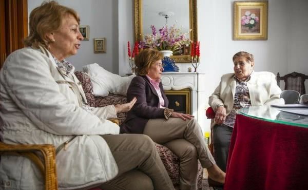 Hace tres años pidió ayuda al ayuntamiento y a través de su médico conoció la ONG madrileña Desarrollo y Asistencia. Desde entonces, todos los martes durante dos horas la visitan Concha Rodríguez, de 68 años, y Belén Pérez-Herrero, de 53. «Las querría tener todo el día», confiesa Carmen con una sonrisa. «Aunque es una persona que tiene sus días malos, cuando venimos nosotras está siempre contenta», cuenta Concha. «Es una enciclopedia su vida: no sabes lo entretenidas que estamos y lo que aprendemos de ella», añade Belén, que pasa a relatar los 25 años que Carmen estuvo cantando en un coro o las trampas que hizo después de la Guerra Civil para poder encontrar trabajo.