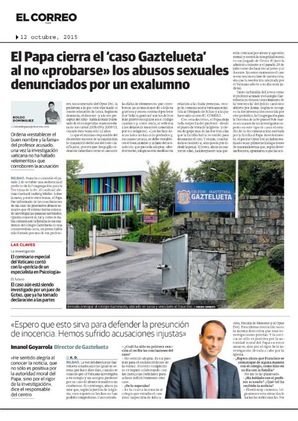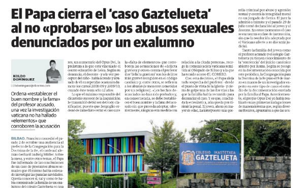 El Correo El Papa cierra el ‘caso Gaztelueta’ al no probarse los abusos a un exalumno (PDF)