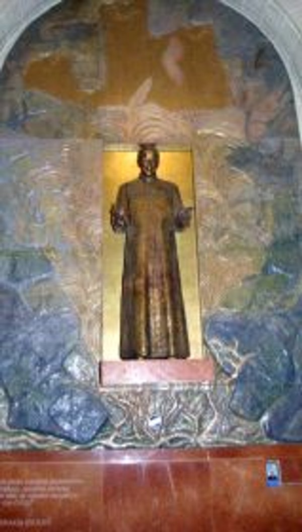 La capilla tiene como referencia una imagen realizada en bronce puro del nuevo santo vestido de sotana, y con los brazos hacia delante en expresión de afecto hacia los fieles.