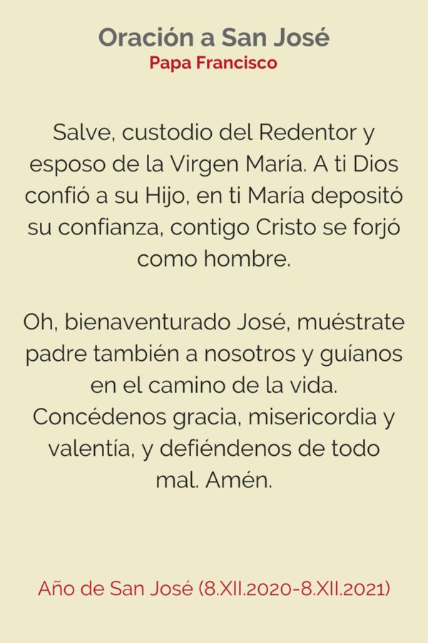 • Oraciones a san José. Oraciones a san José mencionadas en ‘Patris corde’ (‘Con corazón de padre’) y en el decreto con el que se concede el don de indulgencias especiales con ocasión del Año de San José.