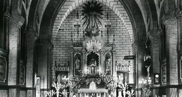 Aquella iglesia era simplemente una capilla, no muy grande, y tenía dos filas de bancos con una nave central y dos laterales más estrechas. A la derecha de la nave, en unos espacios enmarcados por arcos, había dos confesionarios. El primero estaba en el mismo lugar que ahora, a la derecha nada más entrar, y el segundo estaba más cerca del presbiterio, donde ahora está la tumba de Luz Rodríguez Casanova. Era ella quien nos preparaba para la Primera Comunión; murió unos años después en olor de santidad.