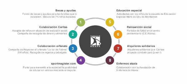 La Fundación, radicada en el barrio barcelonés de Nou Barris, ayuda a las familias de su zona en la educación de sus hijos a través del deporte. Dispone de un recinto deportivo con buenas instalaciones y varios equipos, lo que favorece la implicación de los chicos en las buenas prácticas deportivas.