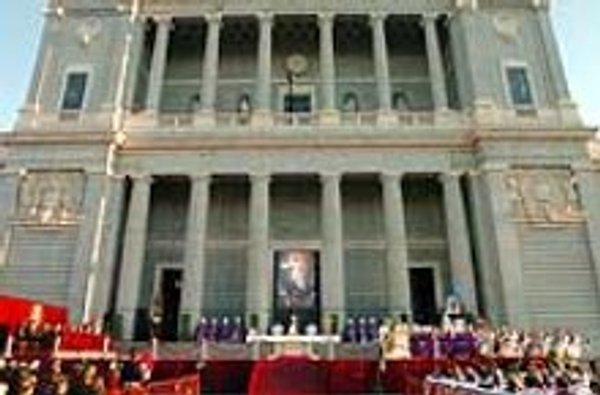«Fíjate. El Papa casi hace más una vez que ha muerto que cuando vivía». El comentario se lo susurra un sacerdote a un joven cuando observa la multitud que se congrega frente a la catedral de la Almudena de Madrid y el vecino Palacio Real. En la explanada que se abre entre ambos edificios, alrededor de 8.000 personas se agolpaban ayer por la tarde para asistir al funeral que ofició el cardenal Antonio María Rouco por Juan Pablo II.