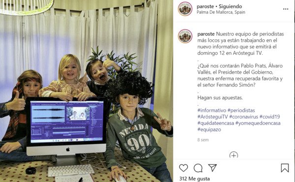 Entre los dos se las ingeniaron para tener entretenidos a sus cinco retoños trabajando en un proyecto de comunicación auténtico y real: una imitación quasi exacta de unos informativos de televisión. En un tono positivo y optimista, sin olvidar lo dramático de la situación, prepararon un programa para cada domingo. Pablo, el padre, es conocido en Instagram como @paroste, y comenzó a difundir estos informativos a través de las redes.