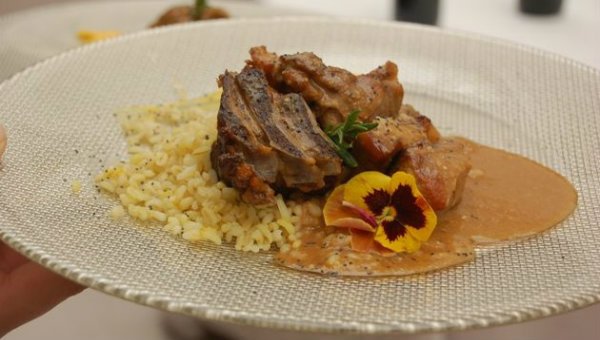Las alumnas de Dirección de Cocina presentaron cada uno de los platos, y una de ellas se encargó de realizar la cata de cada uno de los vinos, tarea que desarrolló con gran profesionalidad y originalidad.