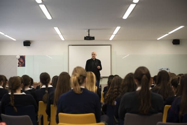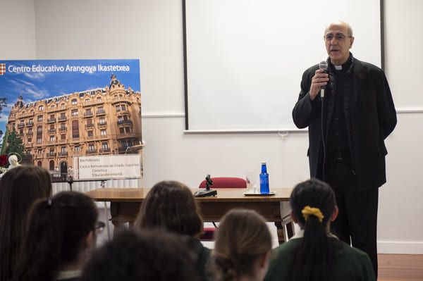 En su paso por los colegios Ayalde, Arangoya y Gaztelueta, el postulador recordó a los alumnos de últimos cursos de la ESO y Bachillerato la razón por la que la Iglesia beatifica y canoniza a personas; en definitiva, cuál es el papel de los santos en la Iglesia y qué podemos aprender de ellos.