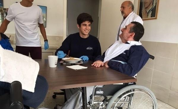 Alumnos de 1º ESO de @gaztelueta charlan con Maria Esther al finalizar la comida en la residencia de las Hermanitas de los Pobres. Siempre les repite que es importante que sean unos buenos estudiantes pero que más importante es que sean unas buenas personas. pic.twitter.com/9t11siJSPE