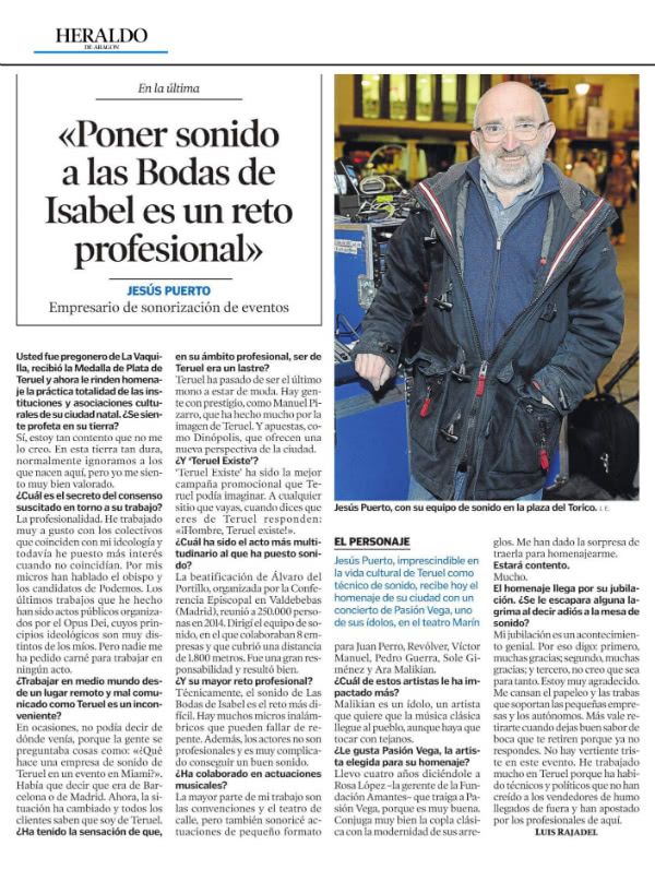 Heraldo de Aragón Jesús Puerto: "Poner sonido a las Bodas de Isabel es un reto profesional" (PDF)