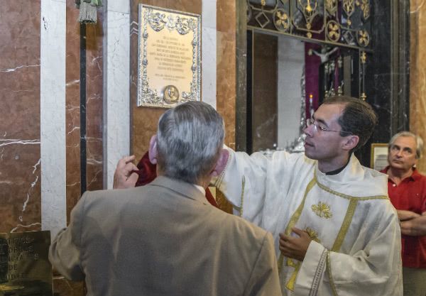 En un sencillo acto celebrado ayer tarde en la Basílica, abarrotado de público, se procedió a la bendición de la inscripción que deja constancia de aquella visita “para su recuerdo permanente”, como señala la placa emplazada por iniciativa de la Hermandad en la Capilla de las Patronas de la Hispanidad de la Basílica.