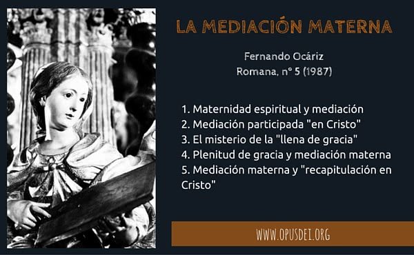 En esta perspectiva, las afirmaciones que presentan a la Virgen como el "cuello" o el "acueducto" a través del cual nos llega la gracia de la Cabeza o de la Fuente, aunque conservan un cierto valor metafórico, se manifiestan en gran medida insuficientes. Más bien deberíamos decir que los hombres reciben la gracia de Dios a través de Cristo y de María porque, en un sentido mucho más real y profundo —y, por eso, mucho más misterioso— que el de las palabras de Lucas referidas a los primeros cristianos (cfr. Act 4, 32), María es cor unum et anima una con Cristo. Por esto, como decía Mons. Escrivá, el cristiano encuentra en María «todo el amor de Cristo» y, en Cristo, se ve «metido en esa vida inefable de Dios Padre, Dios Hijo y Dios Espíritu Santo»[44].