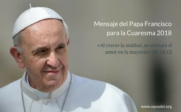Como todos los años, con este mensaje deseo ayudar a toda la Iglesia a vivir con gozo y con verdad este tiempo de gracia; y lo hago inspirándome en una expresión de Jesús en el Evangelio de Mateo: «Al crecer la maldad, se enfriará el amor en la mayoría» (24,12).
