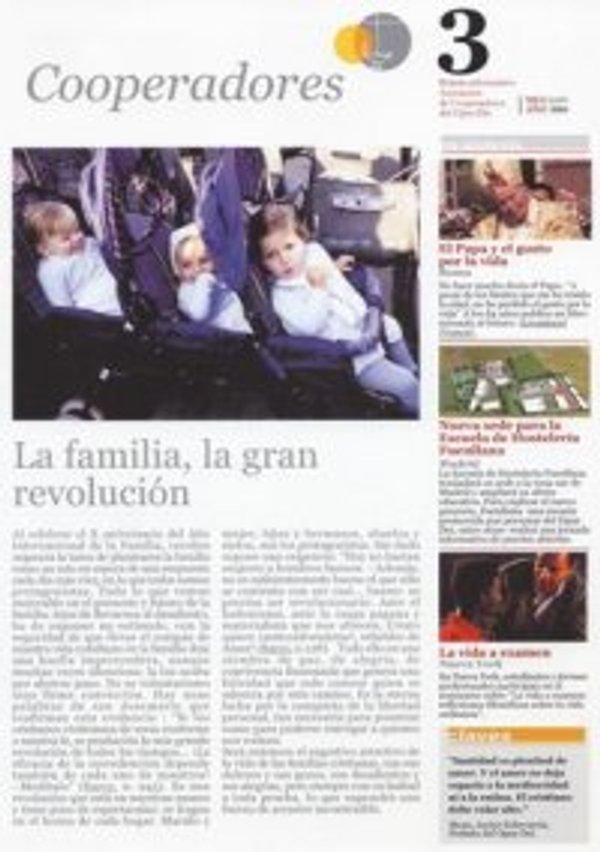 “Al celebrar el X aniversario del Año Internacional de la Familia, recobra urgencia la tarea de plantearse la familia como un reto en espera de una respuesta cada día más viva, en la que todos somos más protagonistas”. Con estas palabras, introduce el boletín Víctor Garrido director de la Asociación de Cooperadores.