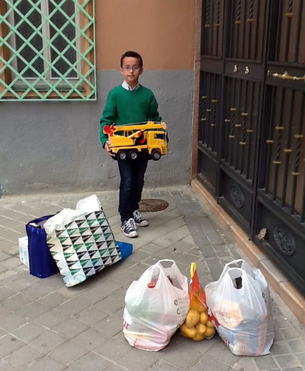 Luis y su hijo Álvaro, de once años, fueron juntos a visitar una familia. Al saber que en esa casa vivían varios niños pequeños, Álvaro seleccionó sus mejores juguetes y regalos recientes de los pasados Reyes Magos para dárselos a sus nuevos amigos. "Cuando hablé con él unos días después, me dijo que le había costado mucho, pero estaba muy contento. Y su padre, más, porque había visto su esfuerzo por ser generoso".