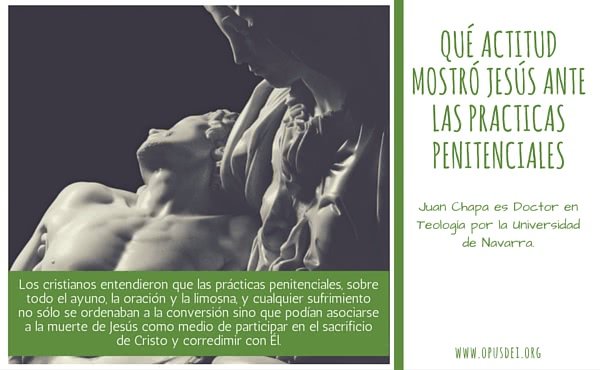 Es decir, hacer penitencia es algo auténtico y eficaz sólo si se traduce en actos y gestos. De hecho, Jesús quiso mostrar con su vida penitente que Reino de Dios y penitencia no se pueden separar. Practicó el ayuno (Mt 4,2), renunció a la comodidad de un lugar estable donde reposar (Mt 8,20), pasó noches enteras en oración (Lc 6,12) y, sobre todo, entregó voluntariamente su vida en la cruz.