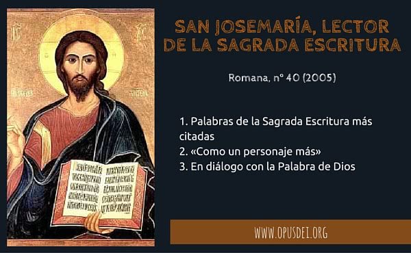 En la biografía de San Josemaría Escrivá, desde los inicios de su actividad sacerdotal, y aún desde antes, hay testimonios de una lectura de la Escritura que vivifica su alma y que hace viva en sus obras la palabra de Dios nota('40','8.0','1','3') 3 .