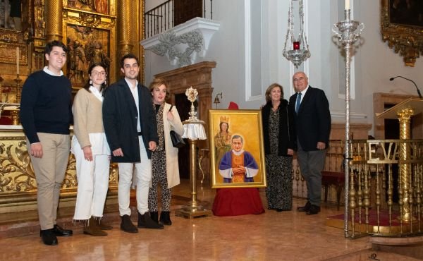 El cuadro se encargó a una pintora malagueña reconocida por sus obras de temática religiosa -de hecho, es autora también de otro cuadro de san Josemaría que se venera en la Parroquia de San Juan-. Representa a san Josemaría revestido para celebrar la Santa Misa, en primer plano, con Nuestra Señora de la Victoria detrás. El párroco bendijo el cuadro y pronunció la homilía, en la que recordó el amor de san Josemaría a la Virgen: