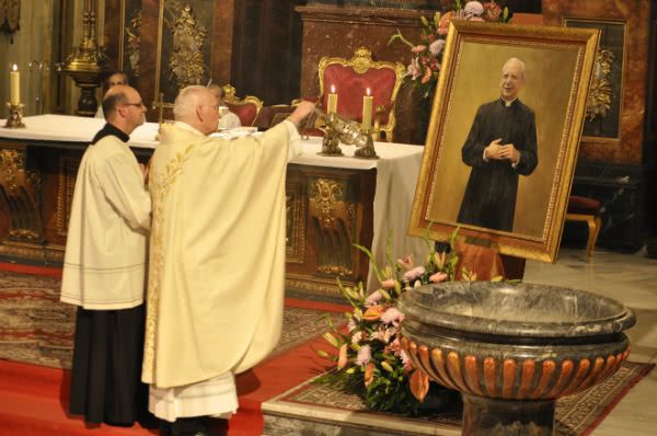 En esta parroquia, situada en la esquina de la calle de Alcalá con la Gran Vía, fue bautizado el Beato Álvaro del Portillo el 17 de marzo de 1914. Miles de personas han sido bautizados en esa Pila Bautismal. Entre ellos, además del Beato Álvaro, la Iglesia honra a Santa María Micaela y a la Beata Nazaria Ignacia March. El cuadro, pues, deja constancia de la vinculación del Beato Álvaro con la iglesia de San José.