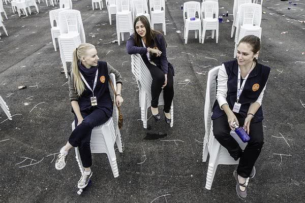 Tienen en común la belleza de la juventud, unos ojos claros e inteligentes y una sonrisa franca, que no teme hablar del motivo de su alegría. Las tres acaban de licenciarse y se dedican a sectores profesionales creativos: publicidad, cine y televisión, y moda. Durante varios días trabajaron como voluntarias en la organización de la beatificación de Álvaro del Portillo. Lilia y Polina, en la zona de las sacristías, y Dasha, en la limpieza de los sanitarios. De lo más divino a lo más humano...