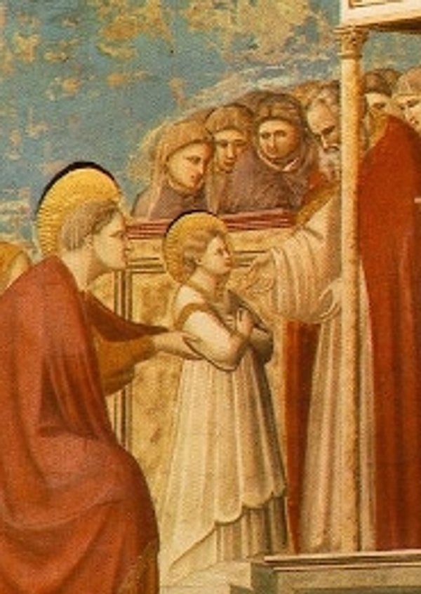 Uno de estos episodios, quizá el más representativo, es la Presentación de la Virgen. María es ofrecida a Dios por sus padres, Joaquín y Ana, en el Templo de Jerusalén; lo mismo que otra Ana, madre del profeta Samuel, ofreció a su hijo para el servicio de Dios en el tabernáculo donde se manifestaba su gloria (cfr. 1 Sam 1, 21-28); igual que, años después, María y José llevarían a Jesús recién nacido al Templo para presentarlo al Señor (cfr. Lc 2, 22-38).
