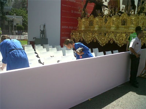 El viernes por la tarde estaré trabajando precisamente aquí, en el Via Crucis. Ahora estoy colocando algunos impresos para que las autoridades sigan el acto. A falta de video, os dejo algunas fotos.