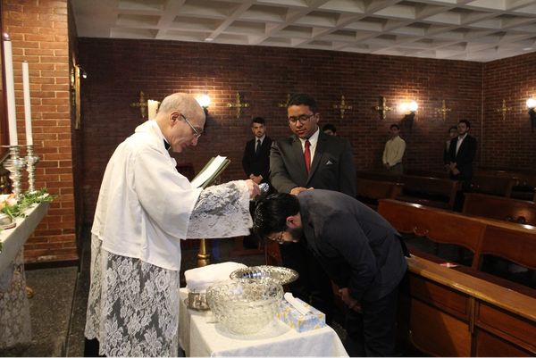 El primer sábado de septiembre fuimos bautizados en el oratorio del CUCV: Angelo, Marcello y Sergio. El día comenzó muy temprano: a las 6:30am sería la ceremonia del bautismo, seguida de la Santa Misa donde recibiríamos por primera vez el Cuerpo de Cristo. El padre Ronaldo Palomo tenía todo preparado desde algunos días antes, incluso a los residentes encargados de asegurarse que nos despertáramos a tiempo. Tal era la ilusión que, a pesar de lo temprano que era para un sábado, muchos residentes nos acompañaron en la ceremonia. Ese día lo celebramos por todo lo alto.