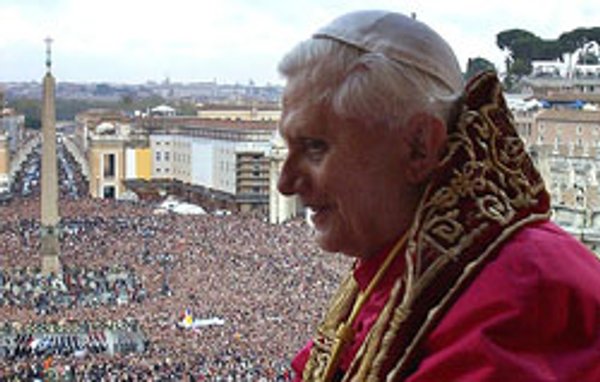 Por primera vez desde su elección como Papa, Benedicto XVI se asomó a la ventana de su estudio en el palacio apostólico para rezar el Regina Coeli y saludar a los miles de fieles que llenaban la Plaza de San Pedro.