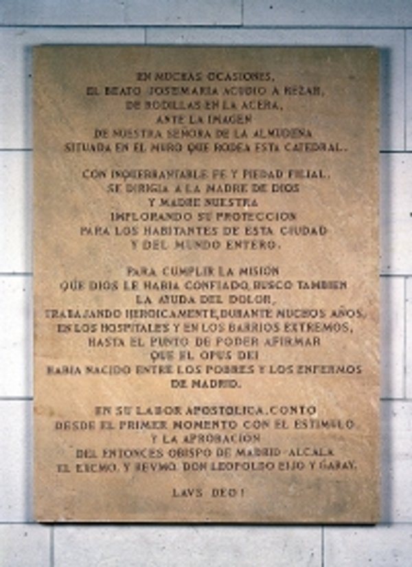 Texto de la lápida de San Josemaría en la Catedral de la Almudena