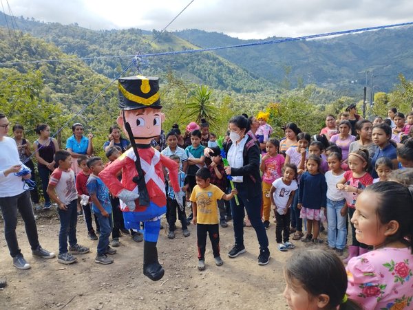 “Encontramos rostros alegres, con ganas de jugar, expectantes”, cuenta Sara. Toda esa ilusión se acrecentó cuando iniciaron con las dinámicas planeadas: participar en los juegos, cantar villancicos, responder preguntas sobre la Navidad y quebrar la piñata. Sin duda, esta última actividad fue una de las favoritas, porque los niños se divirtieron mucho. Pero no todo terminó ahí…