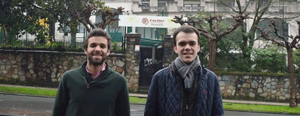 Nacho Pérez y Borja Apaolaza frente a Hotzaldi, proyecto de acogida nocturna de Cáritas Gipuzkoa.